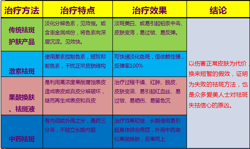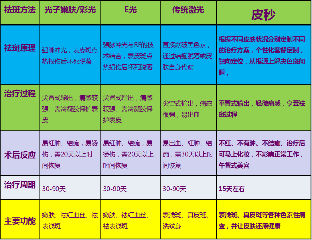 皮秒與其它祛斑對(duì)比: