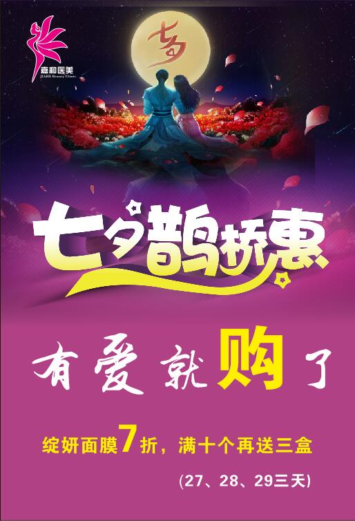 七夕節(jié)當(dāng)天前五十名進(jìn)店免費(fèi)贈(zèng)送愛(ài)的面膜!
